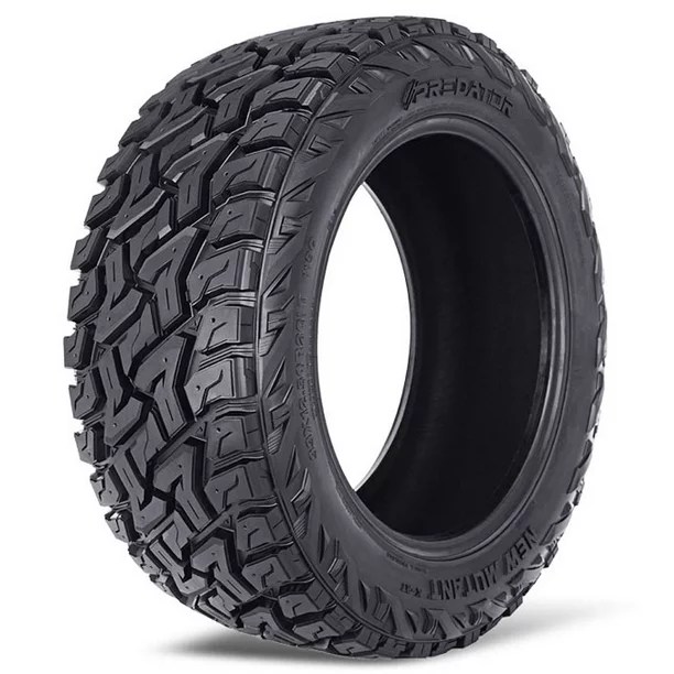 Predator’s New Mutant X-RT is an all-terrain tire that’s designed for use on Jeeps, light trucks, and SUVs and features a dual sidewall design that allows drivers to choose the look the matches their ride. Widely spaced grooves promote self-cleaning for consistent traction and to protect the casing from damage, and the New Mutant X-RT’s stagged shoulder lugs enhance grip in deep sand and loose mud for solid off-road performance. Designed for use on Jeeps, light trucks, and SUVs. Large shoulder blocks provide excellent grip in loose sand and mud. Staggered shoulder lugs improve traction in deep sand and loose mud. Dual sidewall design provides a different driving experience and allows drivers to decide how their tires look. Intermediate void ratio between the tread blocks promotes self-cleaning. Includes 50,000-mile limited warranty.